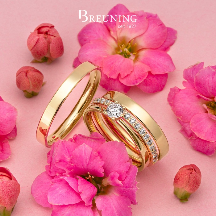 Trauring-Kollektionen mit einer außergewöhnlich großen Auswahl an Designs. Diese Vielfalt an Kollektionen ermöglicht es Breuning in sämtlichen Preissegmenten alle Kundenwünsche von einem günstigen Preis-Leistungsverhältnis bis zu exklusiven Designringen abzudecken. Breuning ist ein bekannter Schmuckhersteller für Gold- und Silberschmuck. Insbesondere auf dem Gebiet der Trauringe stellt Breuning einen der führenden Hersteller in Europa dar. Der Erfolg der Marke basiert vor allem auf der ausgereiften Kombination von Innovation und Qualität. Das ist die tägliche Motivation für unsere Arbeit. Innovative Designs in präziser Ausarbeitung werden ermöglicht durch das Können und die traditionelle Handwerkskunst unserer Mitarbeiter. Dieses meisterhafte Zusammenspiel von qualitativ hochwertiger Fertigung und Designkompetenz wird bei Breuning seit Jahren in die Tat umgesetzt.